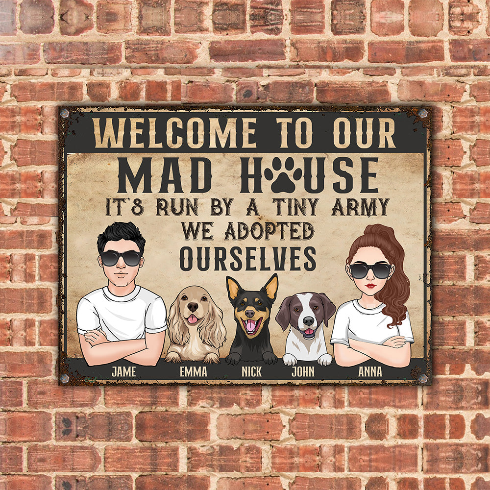Dog Custom Metal Sign Mad House Run By Tiny Army We Adopted Ourselves Personalized Gift
