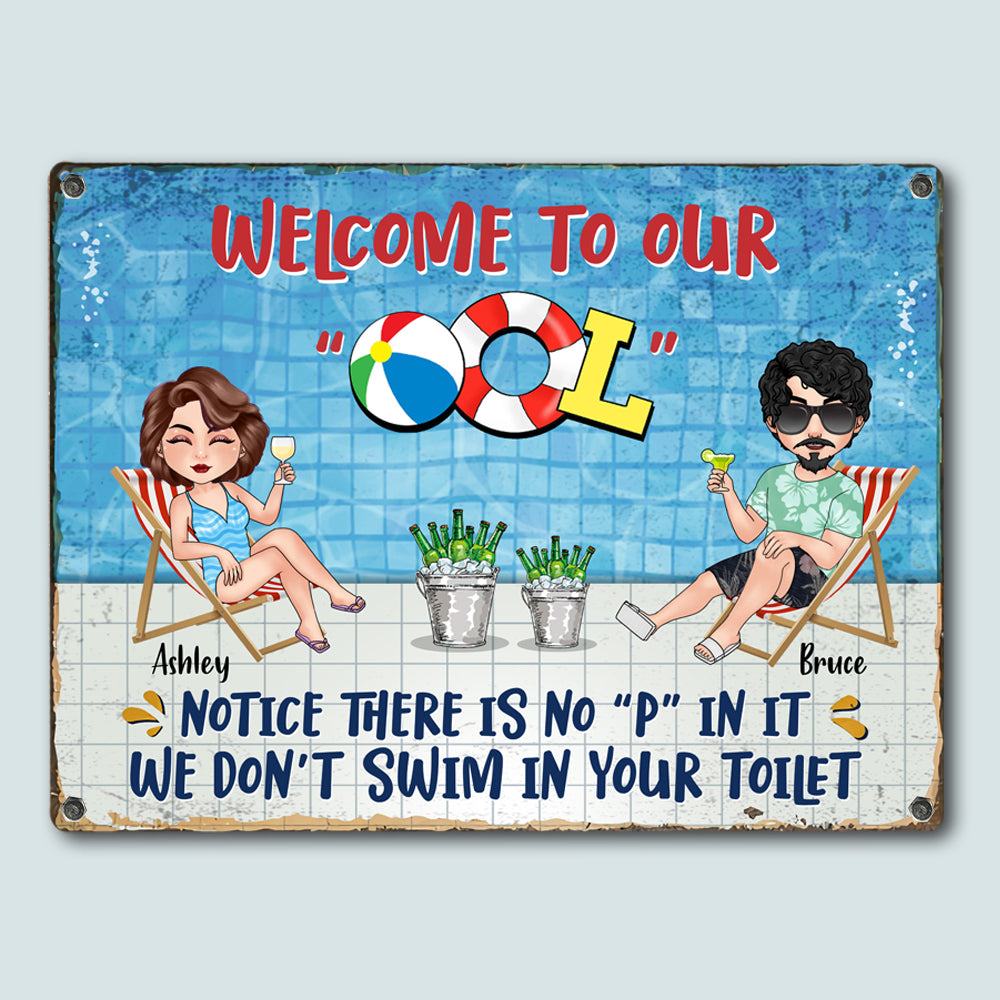 Pool Custom Metal Sign Welcome To Our Pool Notice There's No P Personalized GiftPool Custom Metal Sign Welcome To Our Pool Notice There's No P Personalized Gift