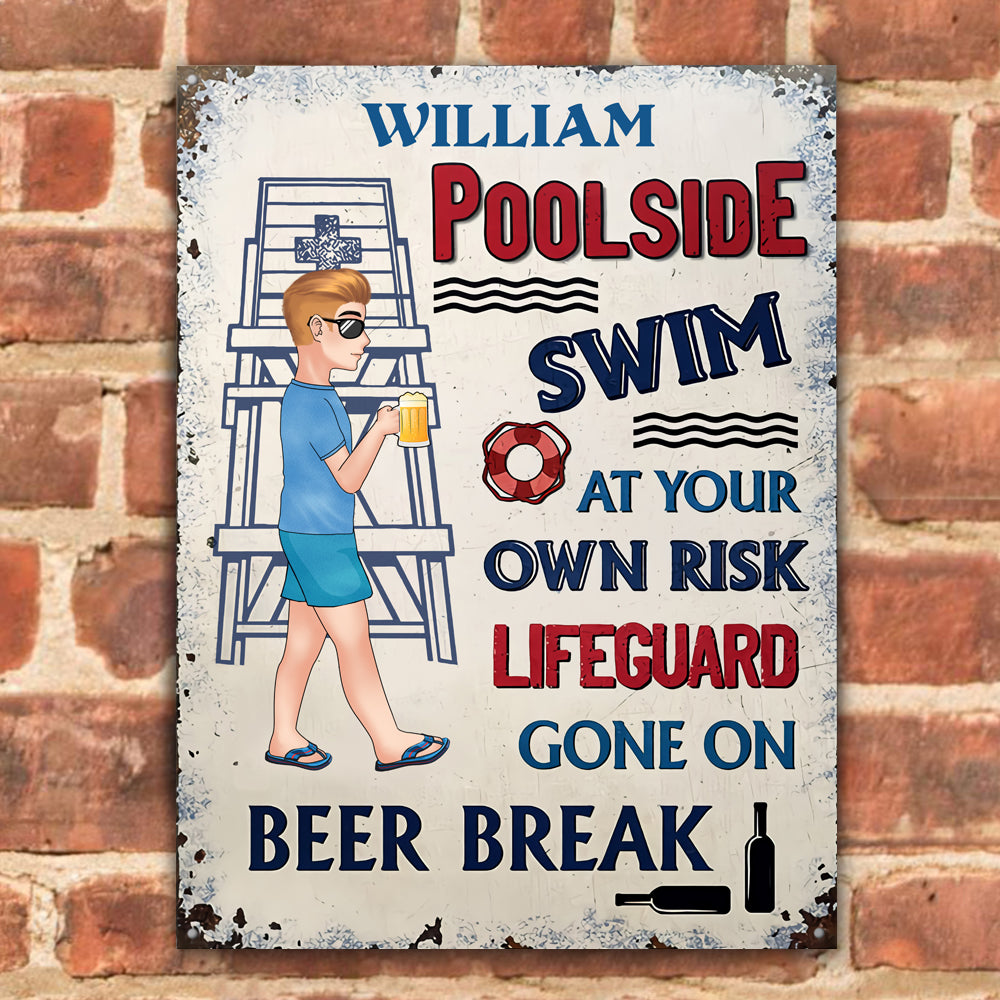 Pool Custom Metal Sign Lifeguard Gone On A Beer Break Personalized Gift