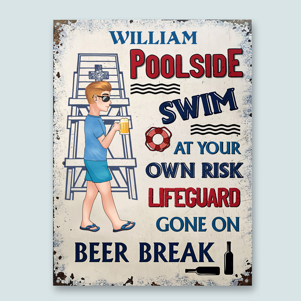 Pool Custom Metal Sign Lifeguard Gone On A Beer Break Personalized GiftPool Custom Metal Sign Lifeguard Gone On A Beer Break Personalized Gift